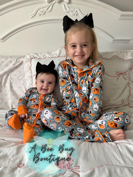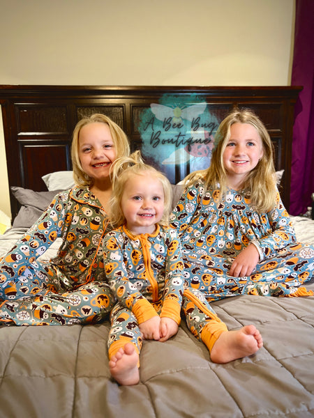 Our first exclusive bamboo pj set! Soft, cooling, and stretchy with the most adorable fall print! these pjs fit true to size with tons of stretch!