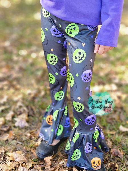 An adorable pumpkin pails print on soft and stretchy milk silk fabric. A perfect match to the hooded tee.