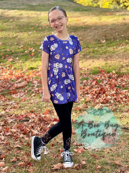 The popular furry friend on a soft and stretchy milk silk peplum with a perfect bow back detail.
